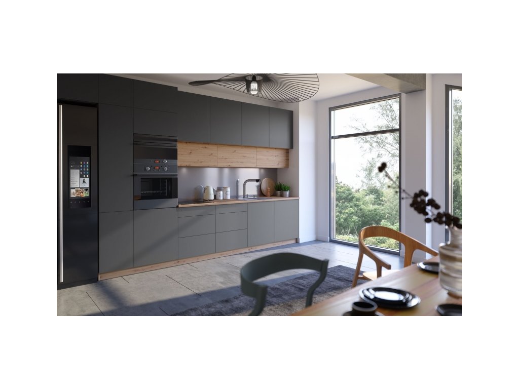Kuchyňská linka LANGEN 340 cm má široký výběr praktických skříní různých hloubek.