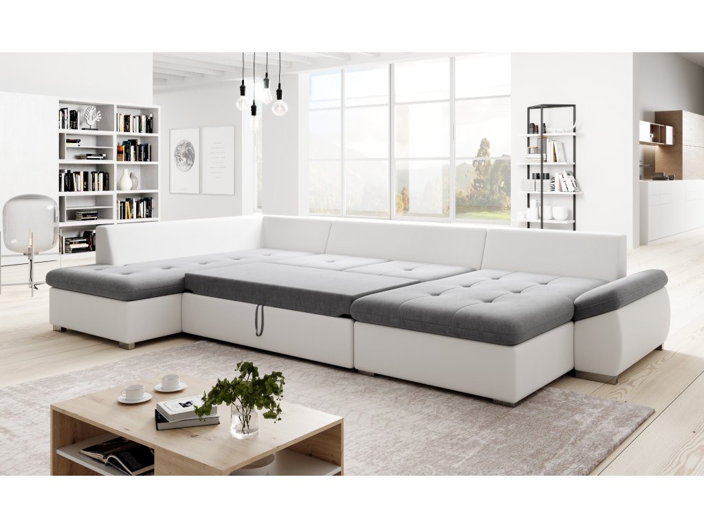 Pohovka neobsahuje úložný prostor, ale vyniká funkčními bočnicemi a prostorným uspořádáním ve tvaru U, které zve k odpočinku i větší společnost.