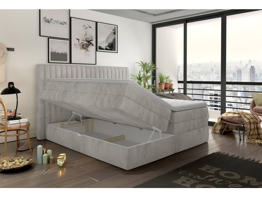 Postel Minola 140×200 – luxusní čalouněná boxspring postel s úložným prostorem
