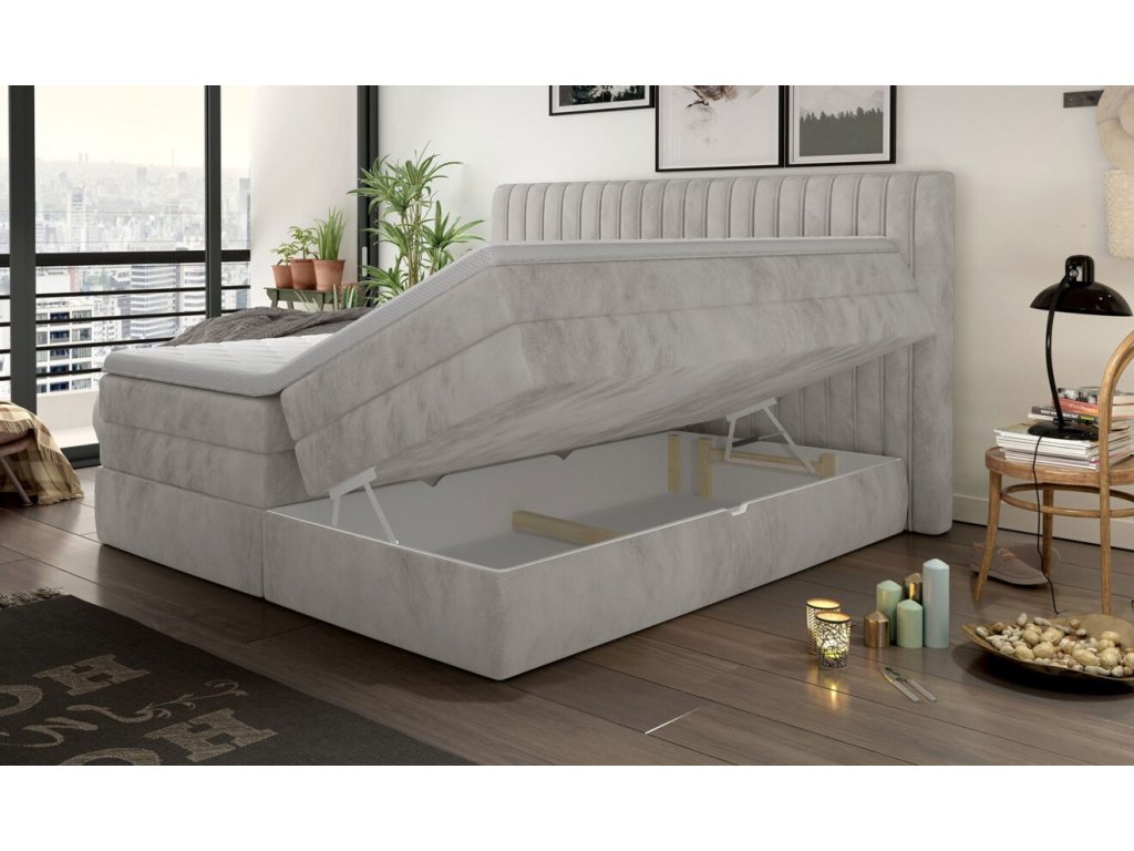 Postel Minola 160×200 – luxusní čalouněná boxspring postel s úložným prostorem