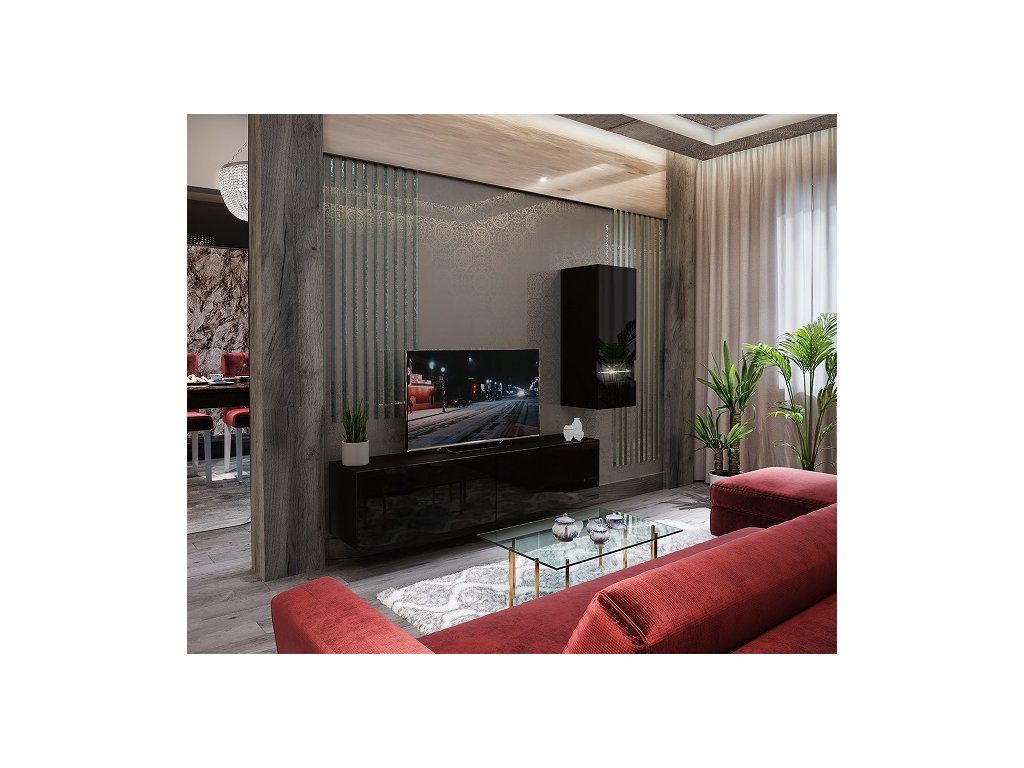 Obývací stěna Box 15 - černá/černý lesk, Obývací stěna Box 15 - černá/černý lesk