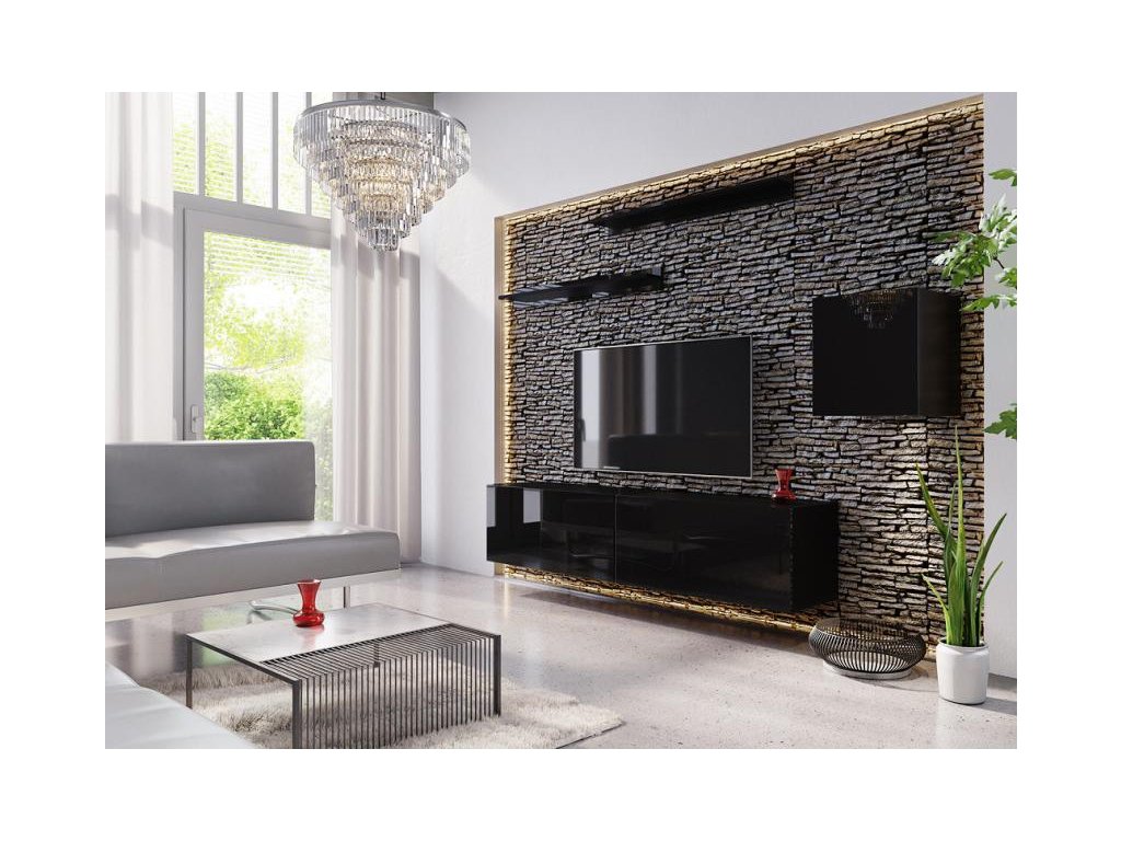 Obývací stěna Box 16 - černá/černý lesk, Obývací stěna Box 16 - černá/černý lesk