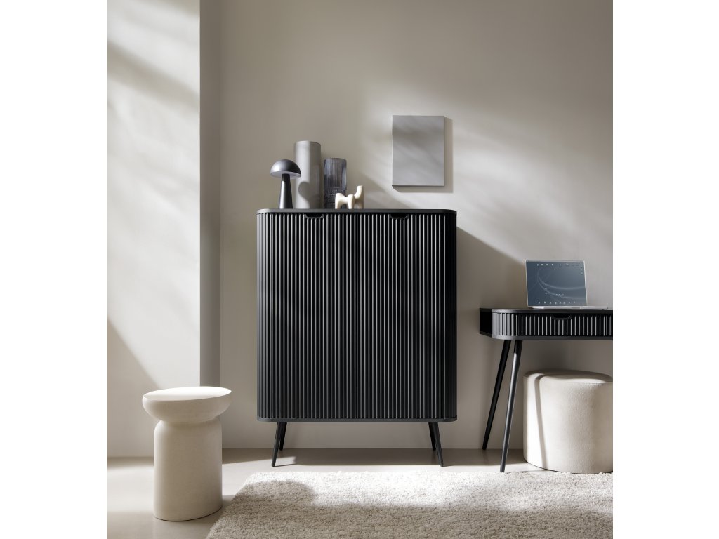 Sestava nabízí praktický úložný prostor – zásuvky, dvířka i police