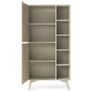 Regál Forest RG80 přináší velkorysý úložný prostor v podobě čtyř otevřených a tří vnitřních polic, díky čemuž se stane skvělým pomocníkem v obývacím pokoji, pracovně či ložnici. Jeho design čerpá inspiraci ze skandinávské jednoduchosti, kterou doplňuje dekor rybí kosti a decentní zlaté kovové úchytky.