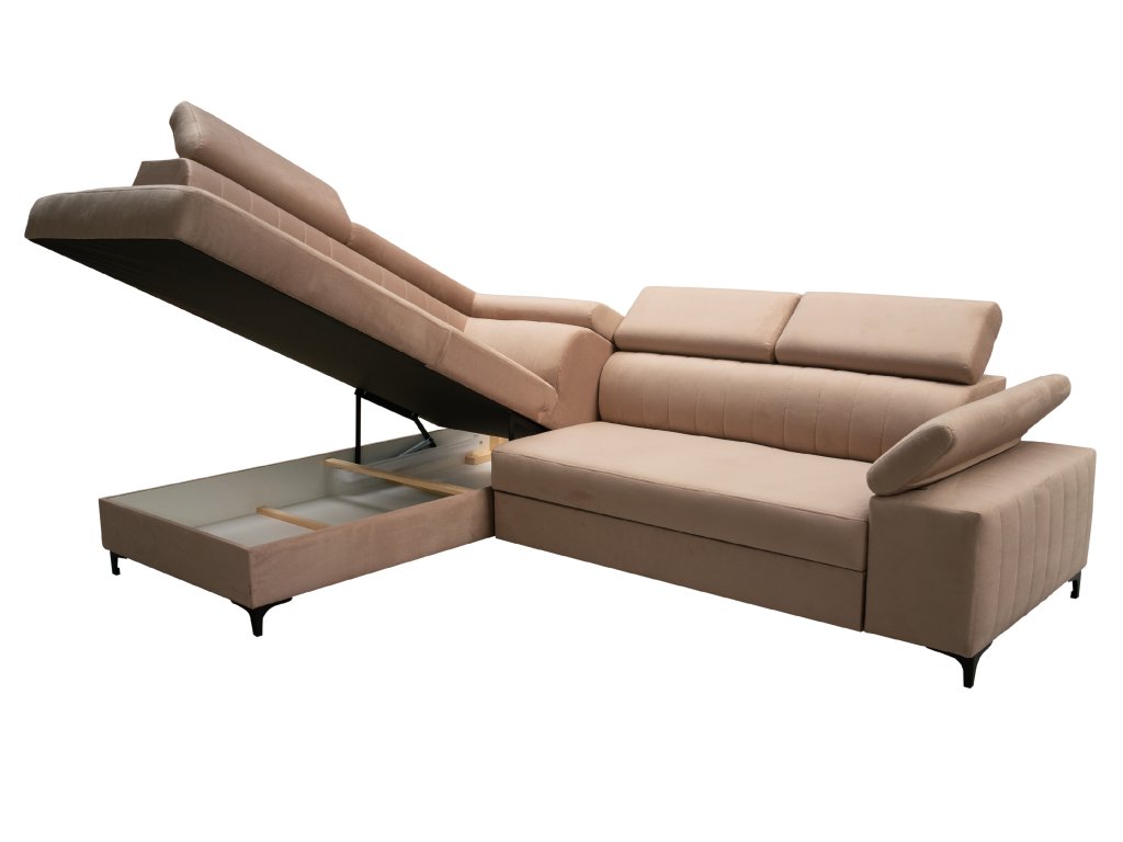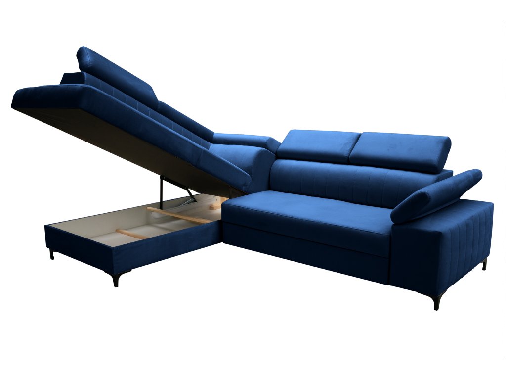 Pohodlí zajišťuje kvalitní čalounická pěna T30 v kombinaci s klikato pružinami, což zaručuje odolnost a dlouhou životnost bez deformací. Polohovatelné opěrky hlavy a široká lenoška s područkou přinášejí další komfort. Nechybí ani funkce rozkládání na lůžko a praktický úložný prostor na ložní prádlo, který se jednoduše otevírá pomocí pružinového systému.