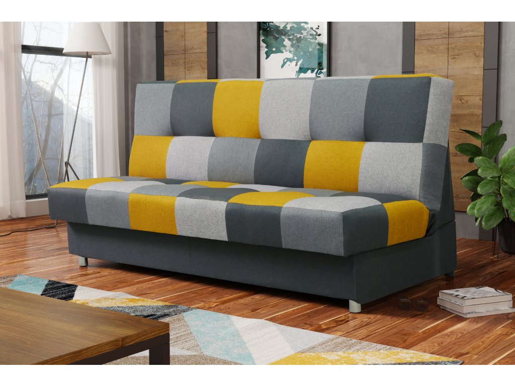Pohovka ZIGZAK je extrémně praktický a stylový kus nábytku, který díky originální patchworkové látce oživí každý interiér – ať už pokoj pro mládež, pokoj pro hosty nebo eklektický obývací pokoj. Bez loketních opěrek nabízí větší užitnou plochu pro pohodlné sezení i spaní.